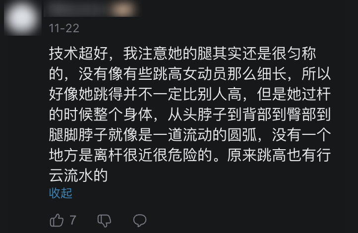 最近一段期间,不知有若干东说念主在反复重温全运会的跳高集锦,轻视点开一条关连视频,都有千千万万点赞,热度相配之高。