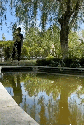 试图轻功水上漂,步骤掉水里成落汤鸡;